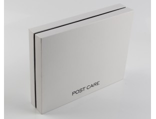 此款服裝包裝盒,采用157g銅版紙裱1000g灰板,商標(biāo)燙黑金,圍邊內(nèi)盒采用黑卡紙裱灰板。此款襯衣包裝盒,選用書本式的書型盒,既增加了盒形的美觀程度,又增強(qiáng)了盒體的牢固程度。襯衫包裝盒,選用經(jīng)典的黑白搭配的對比鮮明又簡潔,給人一種大大方方的爽利感覺。