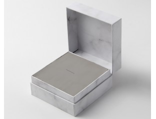 首飾盒子使用雙銅紙制成,雙銅紙因其本身材質的特點強度好、有韌性,紙張挺度和彈性較好,通常作為較高端的產品包裝,這款盒子采用精美專色印刷工藝制成,尺寸可按需求定制。一個包裝盒上必不能少的一個元素就是logo了,這個盒子的logo采用頂級燙金、凹凸工藝制成,看起來很有質感;這個盒子特殊的紋理效果給人環(huán)保又不失單調的感覺,無需過多的雕琢鑲嵌就充滿貴族的氣質。