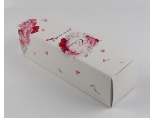 飄散著的粉色花瓣,制造了一種浪漫、溫馨的感覺,情侶間共享燭光晚餐不防也帶上這樣一個(gè)酒盒包裝,渲染一下氛圍。駿業(yè)包裝設(shè)計(jì)印刷的紅酒盒一如既往的平整干凈,厚實(shí)、美觀,精湛工藝可見一斑。酒盒開口處那固定酒瓶的圓孔設(shè)計(jì),別出心裁,卻為攜帶的安全性帶來一份保險(xiǎn)。
