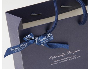 這個(gè)袋子使用卡紙為主要材料,觸感柔韌,且印刷出來的效果很是驚艷,作為一個(gè)珠寶禮品紙袋,它顯得低調(diào)、奢華。這款珠寶紙袋有不同的規(guī)格尺寸,客戶可以根據(jù)禮品的大小選擇包裝袋,不用擔(dān)心看上了它,而它的尺寸卻不適合自己的產(chǎn)品了。珠寶禮品袋子拎手使用和紙袋顏色相同的尼龍材質(zhì),觸感柔軟。袋子上的蝴蝶結(jié)設(shè)計(jì)給紙袋增加了一絲俏皮感,打破這顏色的沉悶。