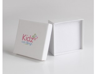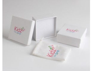 此款首飾盒采用157g銅版紙裱800g灰板,四色印刷過光膠,內(nèi)盒置入成型灰板內(nèi)托。天地蓋首飾盒,配套的絨布袋,與首飾紙盒設(shè)計(jì)統(tǒng)一的顏色,清新,簡約。首飾紙盒整體采用白色作為主打色,商標(biāo)四色印刷,白色中加入少許彩色,往往能起到引人注目的效果
