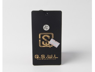此款商標吊牌廠家選用黑卡紙,商標燙金,黑卡紙是特種紙的一種,其表面平整光滑,挺度好,拉力好,耐破度高此款吊牌設計選用了黑色作為主體色,搭配醒目燙金的LOGO,更彰顯其品牌價值吊牌設計采用了經(jīng)典的黑色和金色配合,沉靜的黑色能隱去燥熱,璀璨的金色能喚起您喜悅的心情