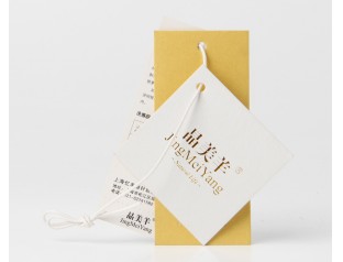 此款服裝吊牌制作采用了400g銅版紙,雙色印刷,商標(biāo)燙金。服裝吊牌設(shè)計采用了小清新的風(fēng)格,整體以白色為主,搭配黃色,簡約,大方。吊牌設(shè)計商標(biāo)燙金,醒目的燙金LOGO,更彰顯其品牌價值。